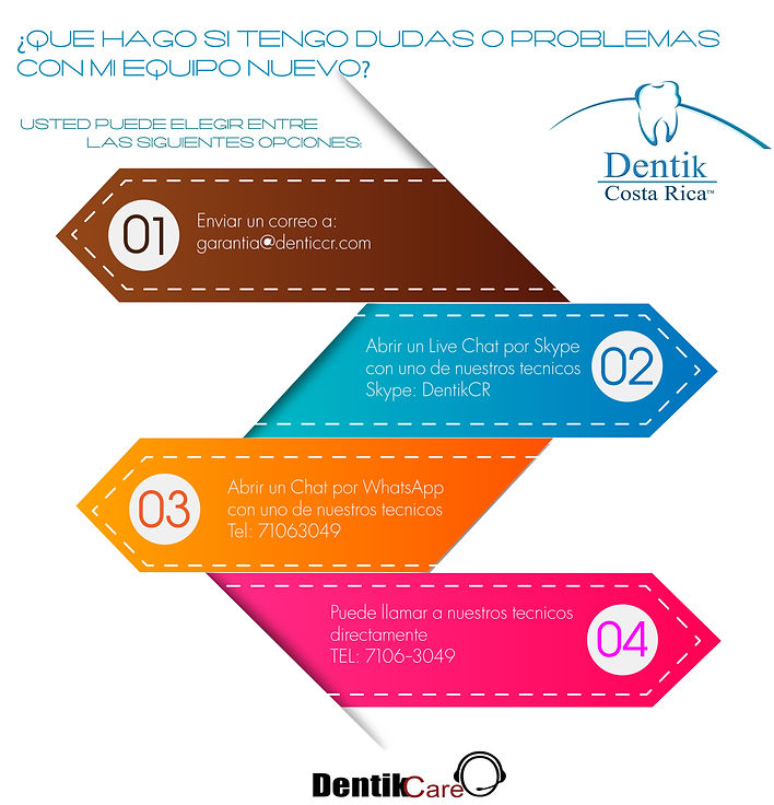Tranquilidad con cada Equipo nuevo. En Dentik Costa Rica estamos comprometidos con la Satisfaccion, calidad, y el mantenimiento apropiado de tu equipo es importante para ambas. Por eso incluimos este plan de mantenimiento de cortesía, con la compra de cualquier equipo nuevo. Durante su garantia su equipo estará cubierto. Te damos tranquilidad, y somos la única compañía de línea completa que ofrece algo como esto.